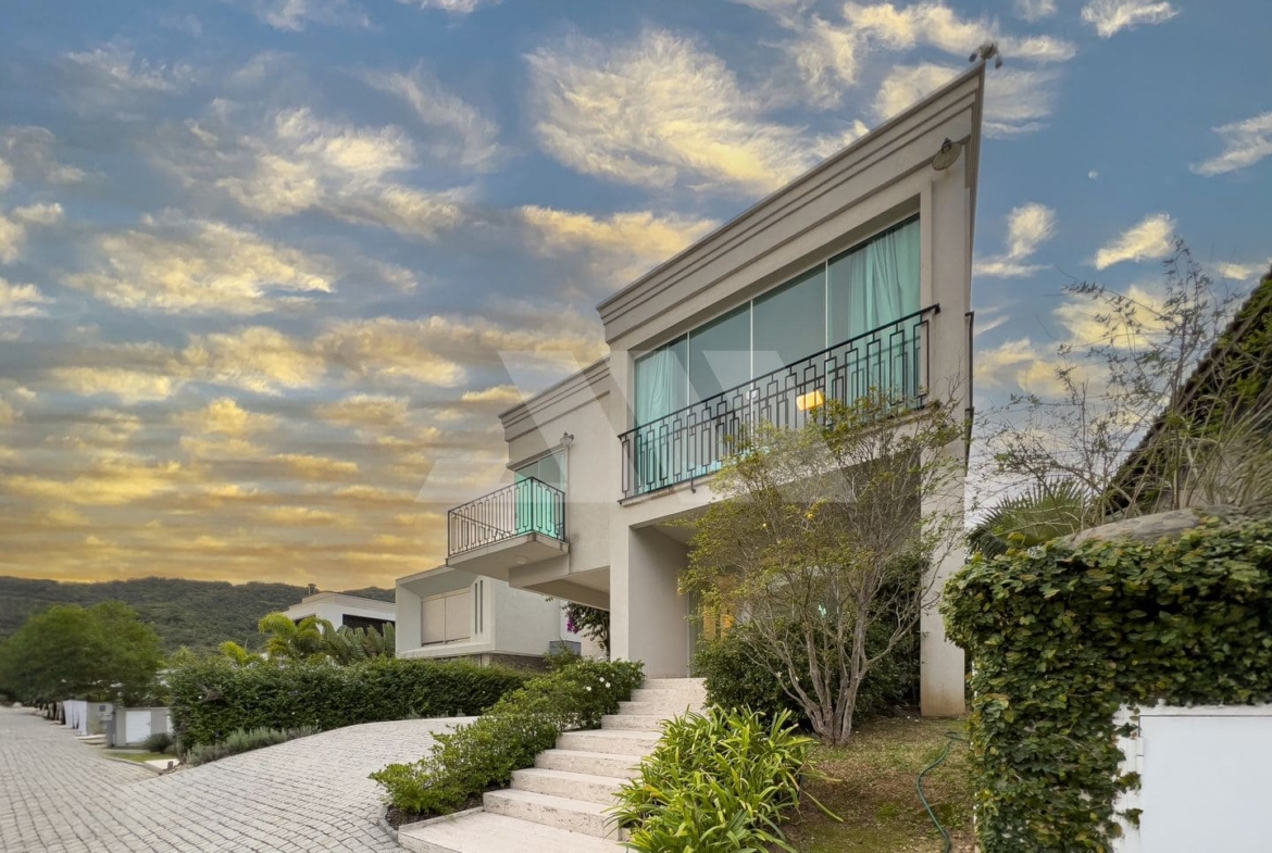 A J. Maurício Imobiliária tem o prazer de apresentar esta elegante residência no renomado Condomínio Vivendas do Atlântico Praia do Estaleiro. Trata-se de uma oportunidade singular de adquirir uma casa de alto padrão (236m² privativos) com o privilégio de ter acesso direto à praia, combinando a segurança de um condomínio fechado com a exuberância natural da região. A arquitetura da casa, distribuída em dois pavimentos, reflete o desejo de conforto e sofisticação em um dos endereços mais valorizados do litoral catarinense.